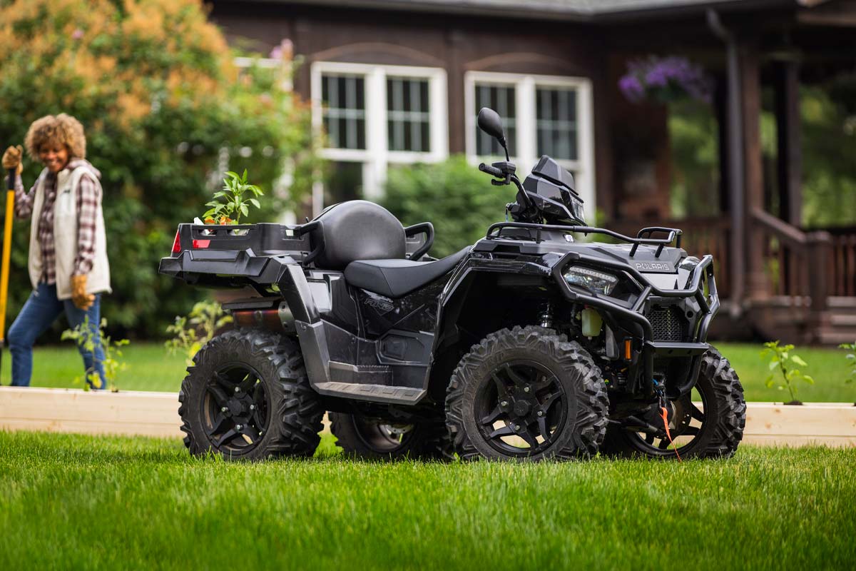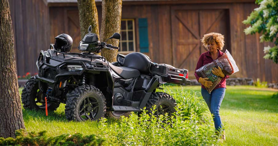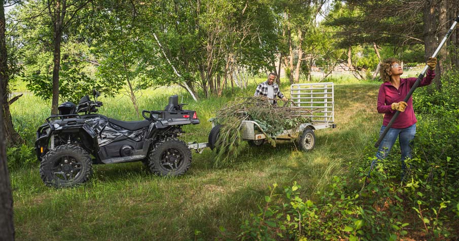 Le Sportsman X2 570 vous aidera à faire face à tous les travaux  grâce à sa capacité de traction énorme de 830 kg et de chargement de 181 kg de la benne basculante.