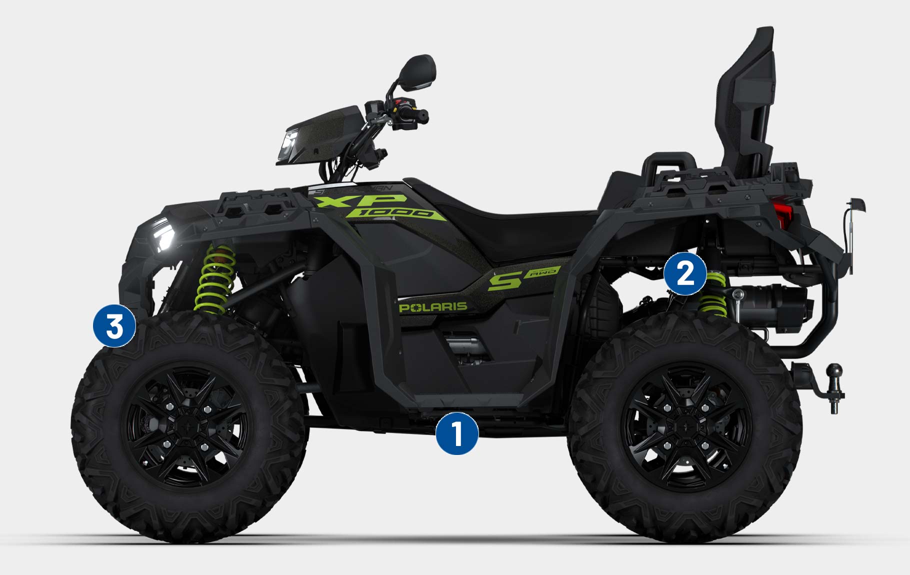 Le Sportsman XP 1000 S est conçu pour absorber les chocs, gommer les irrégularités du terrain et offrir une conduite fluide, même sur les chemins techniques. Grâce à sa suspension à long débattement, sa traction renforcée et sa stabilité exceptionnelle, vous pouvez parcourir plus de kilomètres avec moins de fatigue.